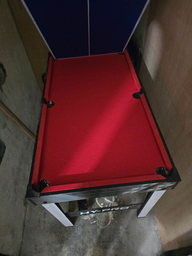 4 in one game table never been yoused lost one pool que and table tennis net and 2 skatebords one has been yoused 3 times