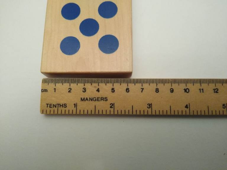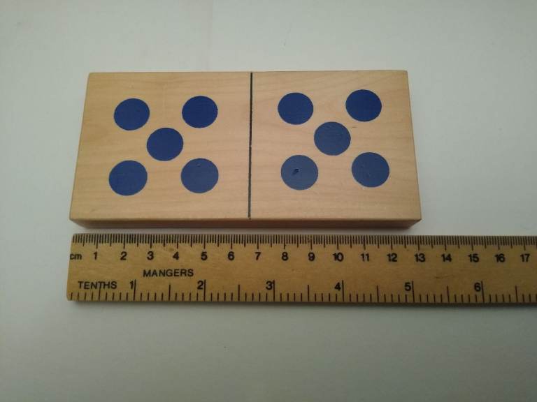 Dominoes measure 13 cm long x 6.3 cm wide x 1.4 cm thick.
