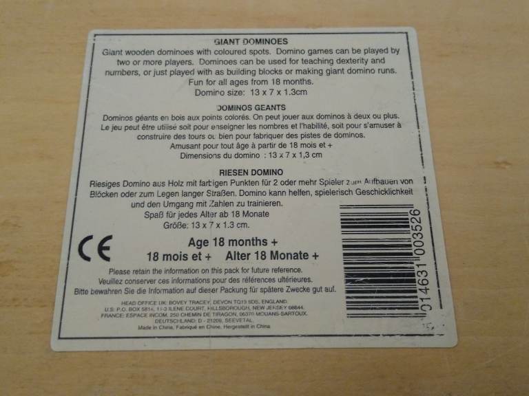 Giant Dominoes in a Wooden Box set made by The House of Marbles.