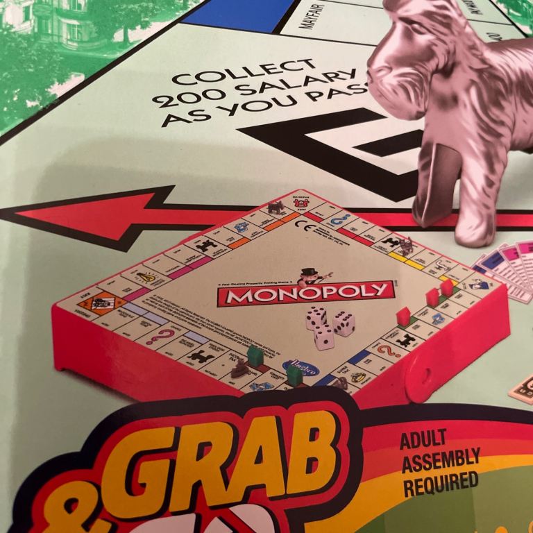 New and sealed game of the classic monopoly. Grab and go is the modern name for travel games. It’s simply a clamshell design that keeps everything safe for travel.
