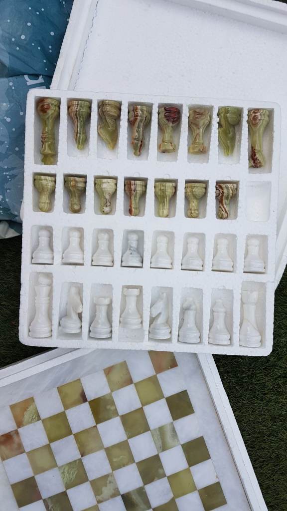 This handmade chess set features a beautifully crafted marble chess board with intricate detailing and multi-coloured pieces. The elegant design and high-quality material make it a stunning addition to any chess enthusiast's collection. Perfect for both practical gameplay and display, this unique chess set is sure to impress both beginners and experienced players.