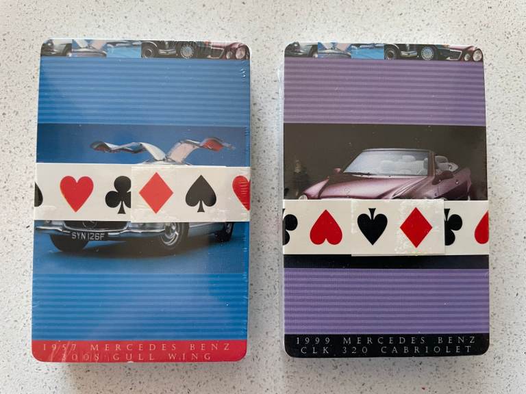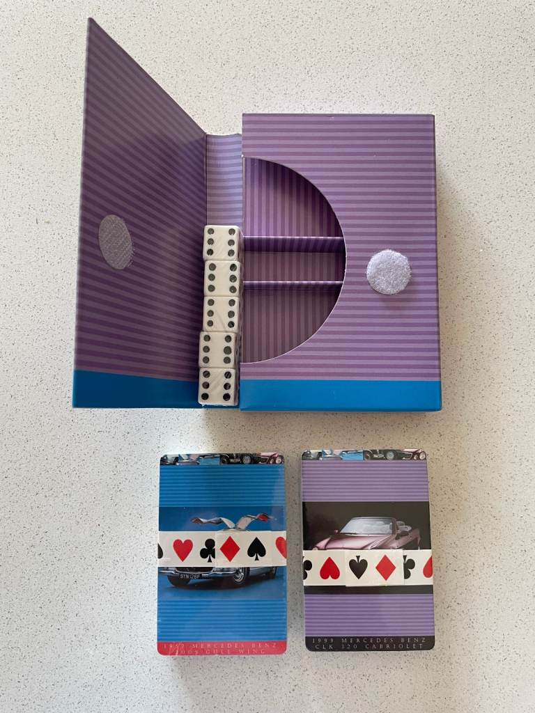 Mercedes playing cards (2 packs) with 5 dice (unopened):