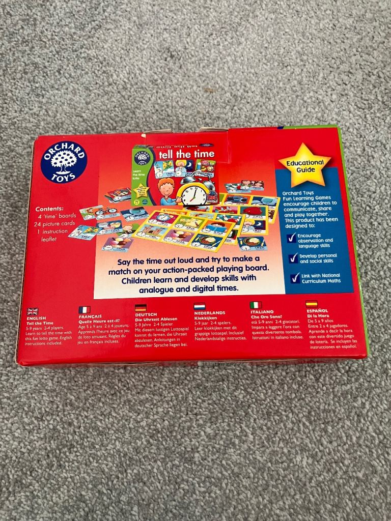 Posting for 11+ yearsOrchard Toys Tell the time game (age 5-9 yrs)