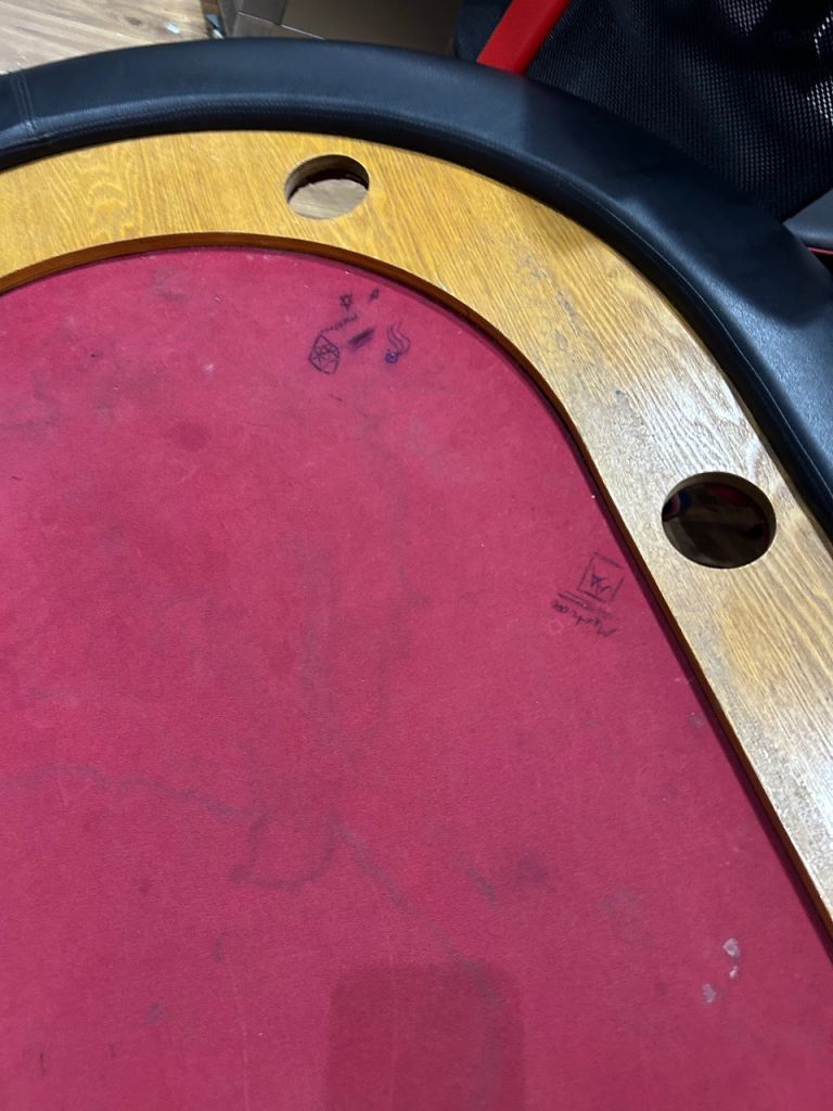 Really solid poker table, has writing and stains on the fabric, could do with a steam clean but this is easily one of the sturdiest portable poker tables about.