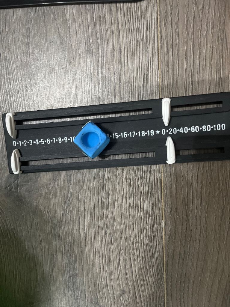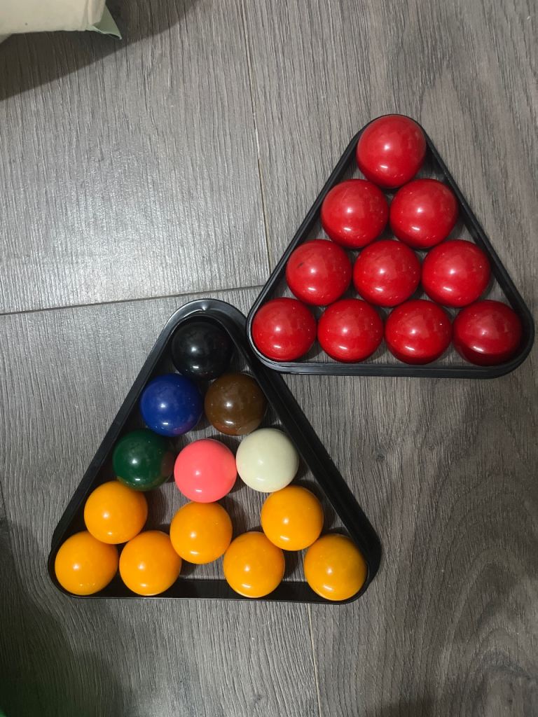 5ft table with balls for snooker and pool, triangles and scoreboard.