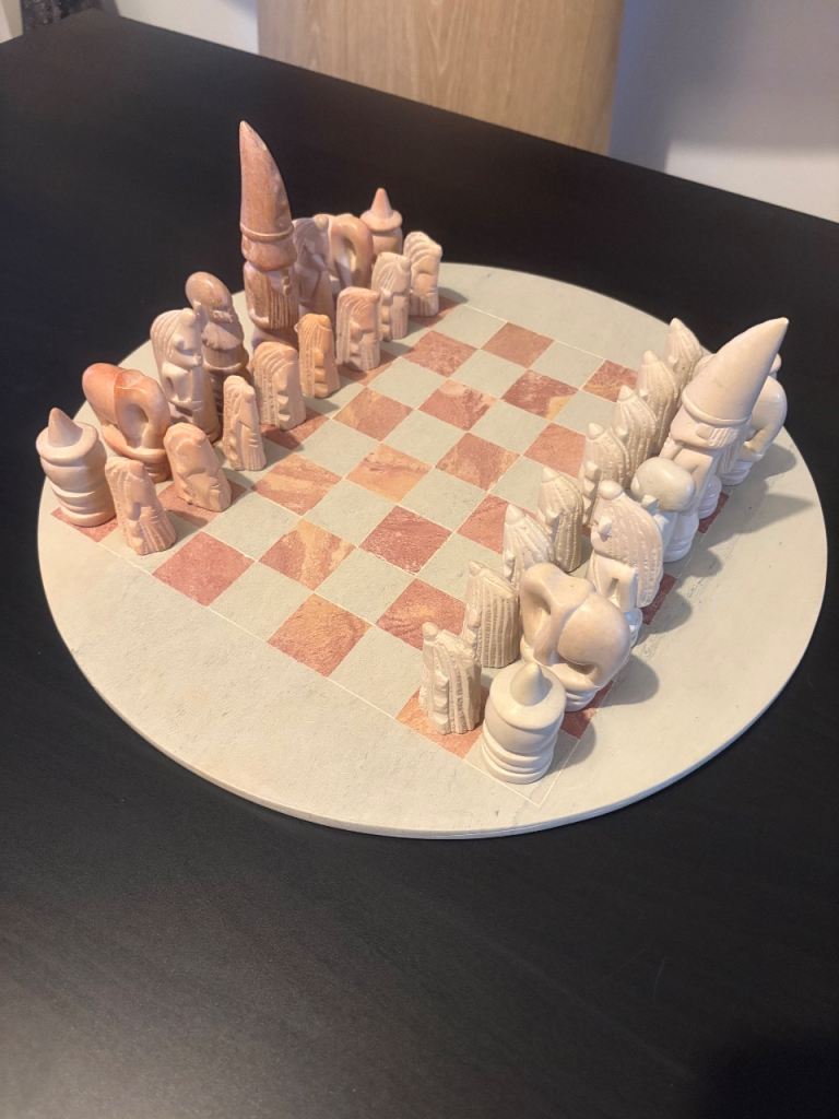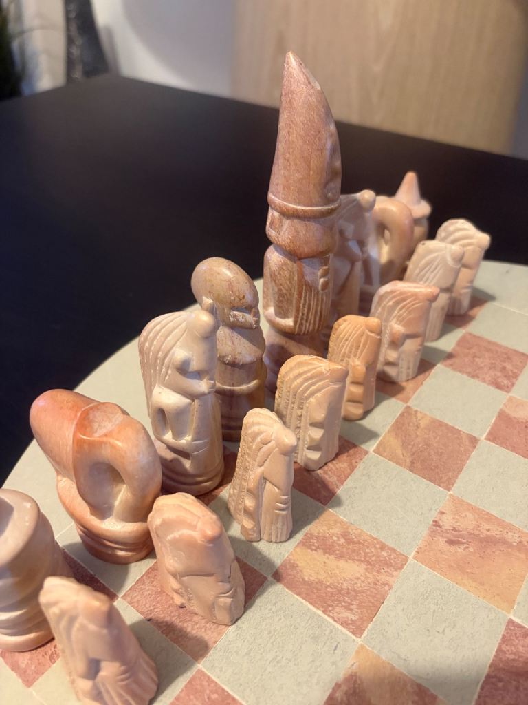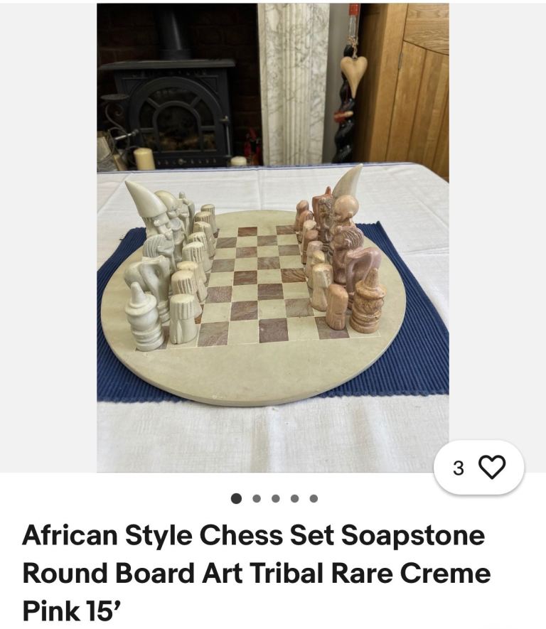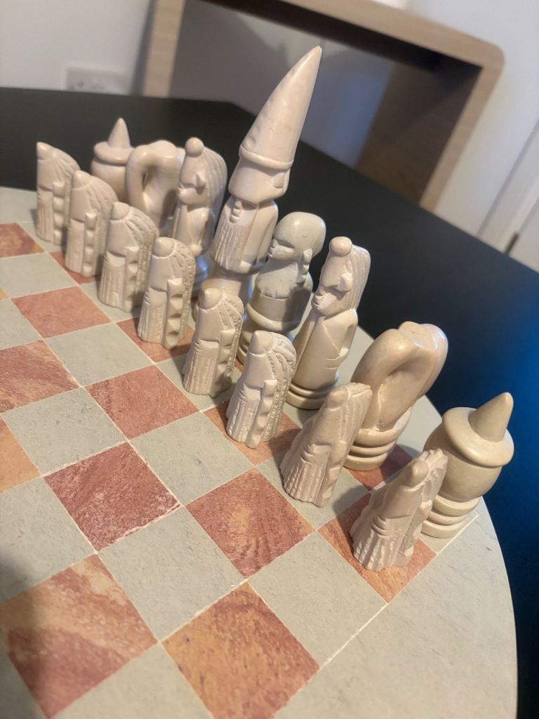 Stunning Soapstone African style chess set, excellent condition only 1 small chip in one of the pieces as shown in pictures.