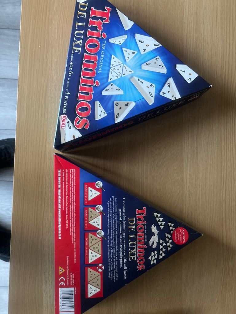Triominos De Luxe is a strategic, triangular-tiled variation of the classic game of dominoes. It is designed for 2 to 4 players (though some editions support up to 6) and is generally recommended for ages 7 and up.