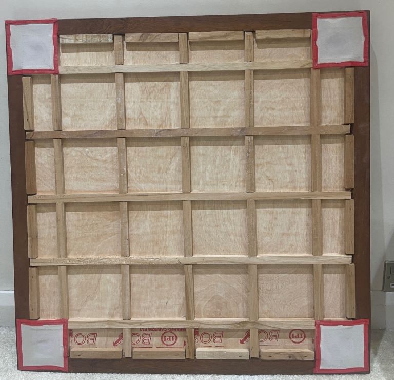 Smooth, polished wooden playing surface with traditional star design