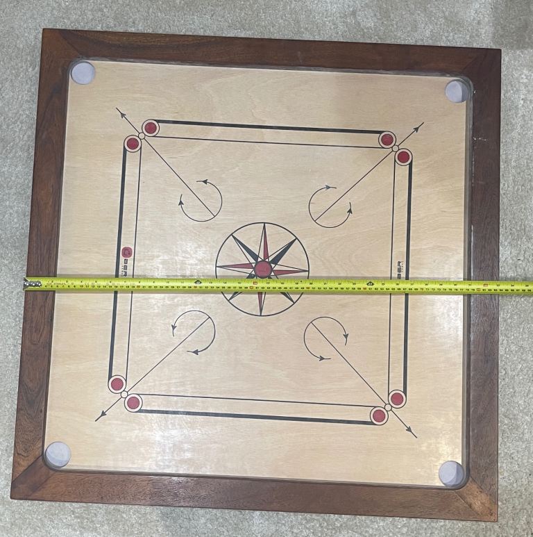 Posting for 8+ yearsUber 33”x33” Carrom Board with 2 Strikers, Complete Coins, 2 Powder & Cover