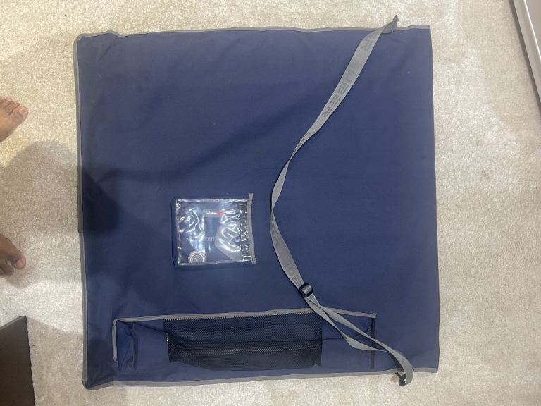Original navy blue carry bag with shoulder strap and zip pockets
