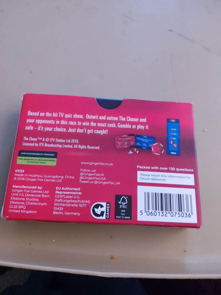 The chase card game, as good as new. Over 100 questions.