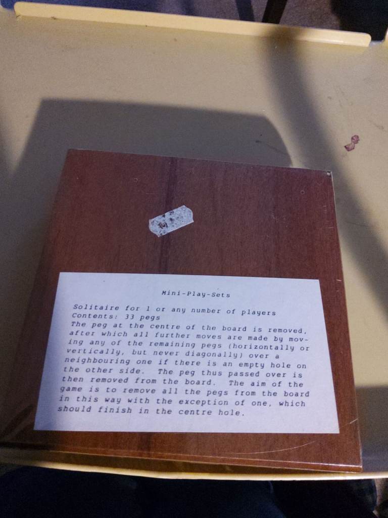 Board game, solitaire, brand new, in original packaging. Wooden, 16 x 16 cm. Good as a travel game.