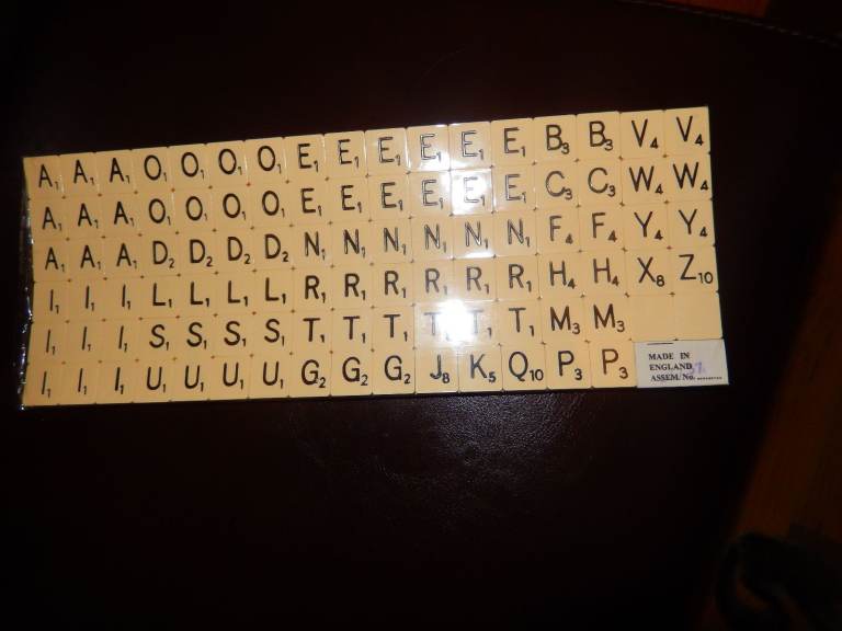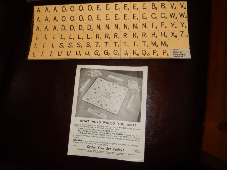 VINTAGE SCRABBLE BOARD GAME UNUSED IN EXCELLENT CONDITION [BOX MARKED SEE PICTURE] PLASTIC TILES STILL IN COVER NEVER OPENED
