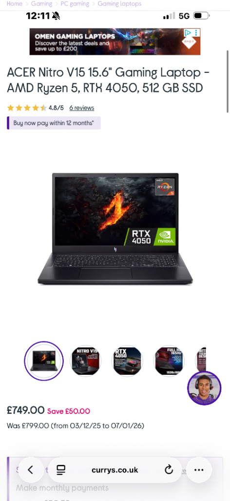 Selling my Acer Nitro V15 15.6” gaming laptop in great condition. Powerful and fast, ideal for gaming, work, or everyday use.
