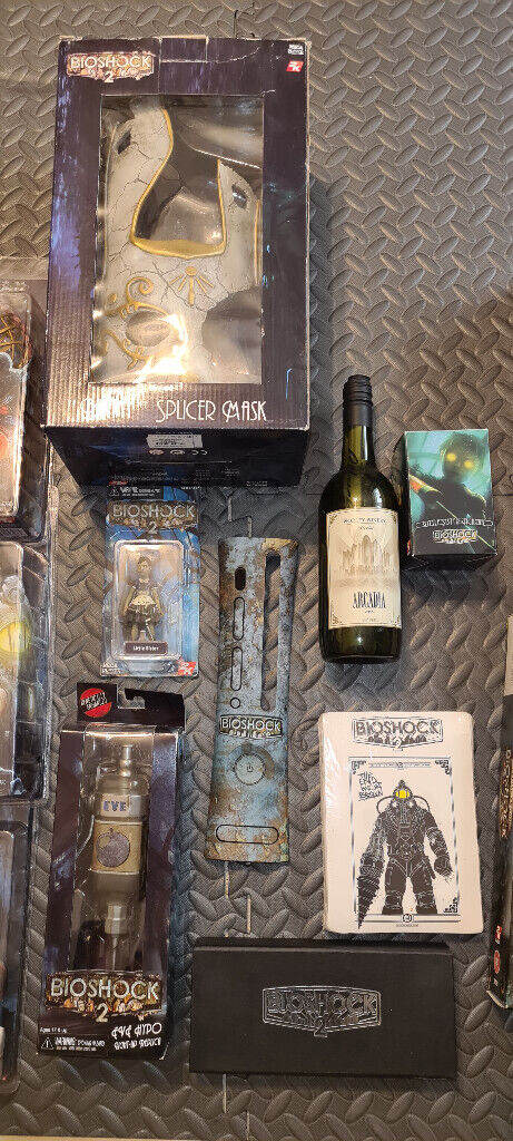 I've decided to part ways with my beloved Bioshock Collection. This job lot includes some extreme rare items such as the Unopened Worley Refinery Arcadia Wine bottom from the "Somthing in the Sea" promotional event.