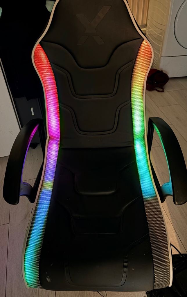 Great condition gaming chair. Only for sale due to new one as a surprise. Price is ono. Can't find wires for Bluetooth.