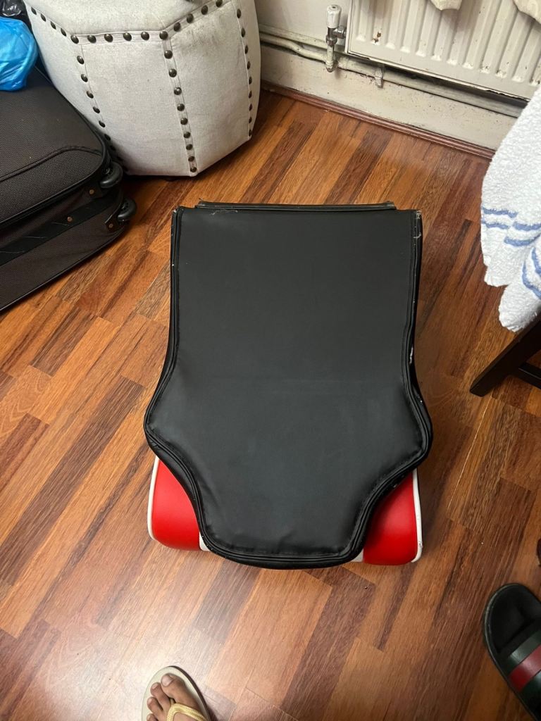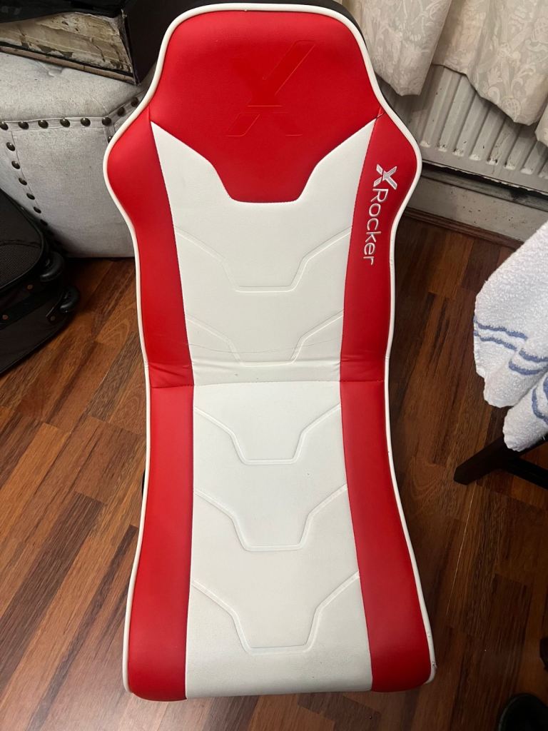 Hi there Xrocker red gaming chair very nice and comfortable while playing game excellent condition call if interested
