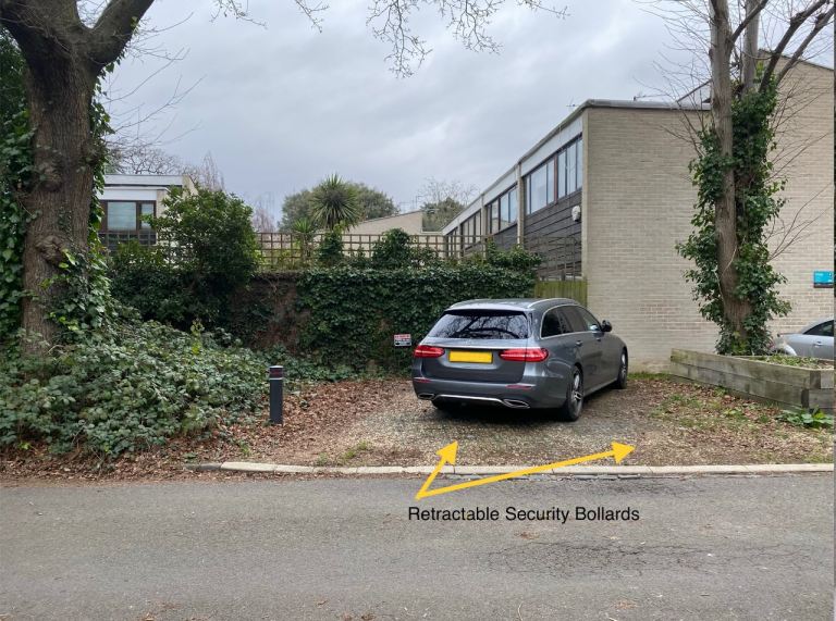 Each spaces has a operated retractable security bollard with either a 4 digit combination lock or key locks.