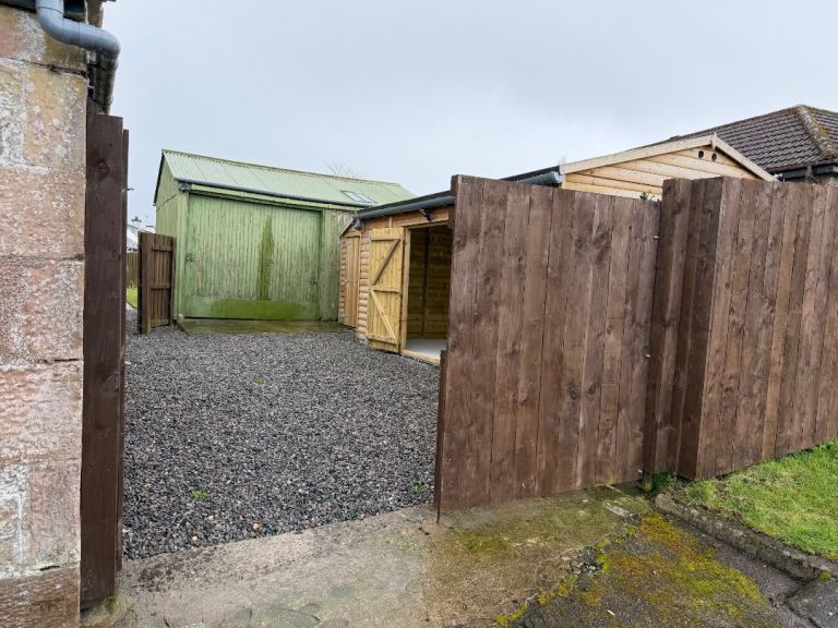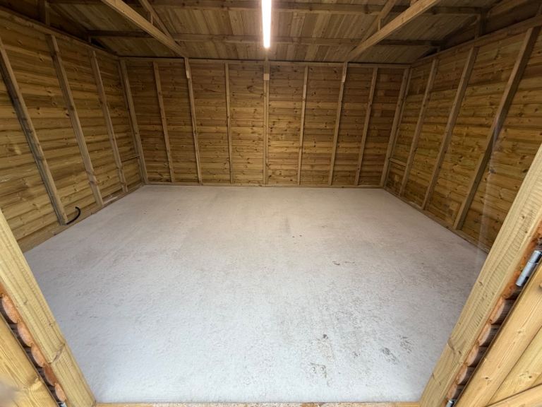 Large wooden garage/shed just off Kinmylies Way. 16 feet by 12. Access to water and electric light inside and out, but no electric power. £175 a month, with £175 deposit. Please note that the doors are in the side wall so the garage is not suitable for a car, but very suitable for motor bikes or storage.