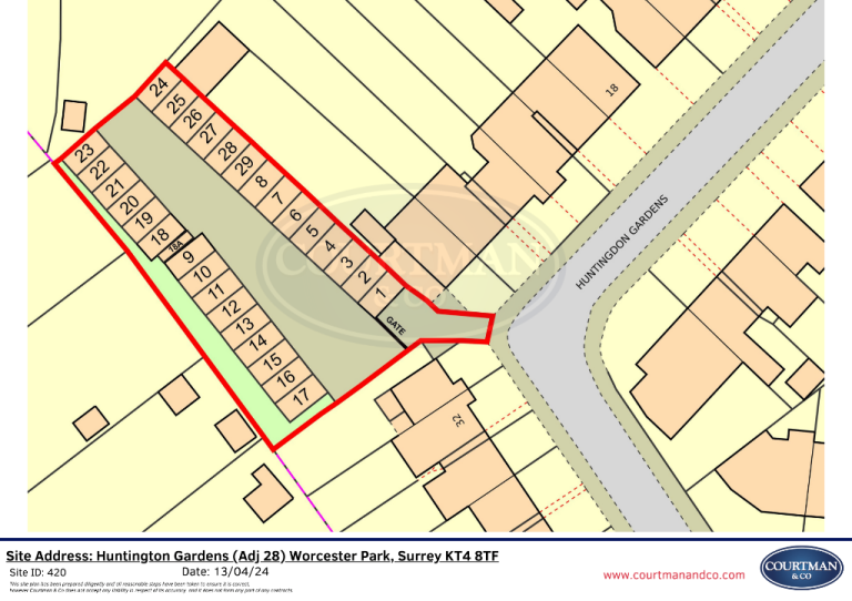 Site Address: Huntington Gardens (Adj 28) Worcester, KT4 8TF