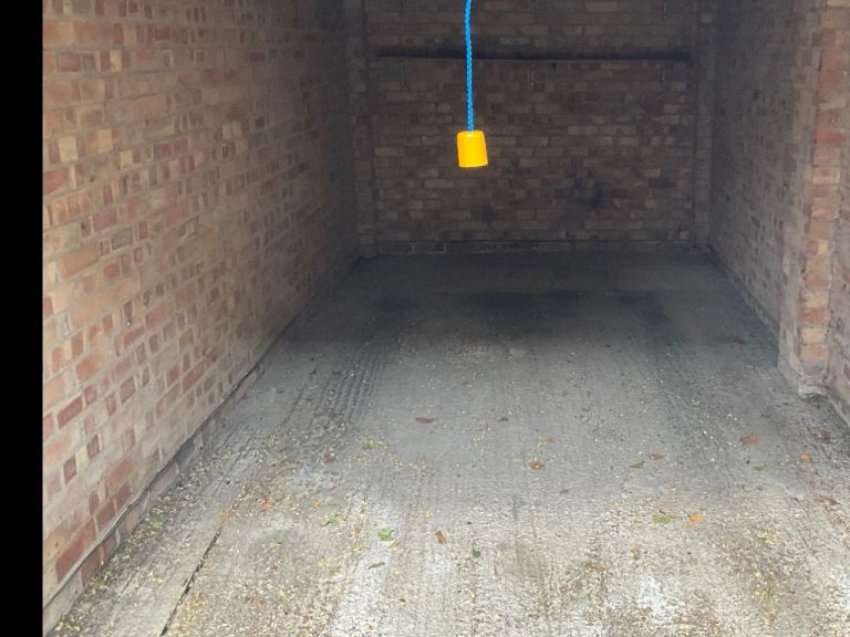 Width at door 2.5m, Height from floor to bottom of open door 1.9m, Depth from closed door to back wall 4.9m. No water or electric . Off road cannot be seen from the road.