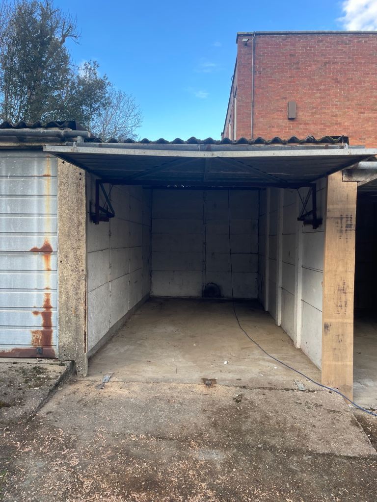 Dry, secure lock up available to rent for min one year. For car parking or storage only. Please note - rent payable quarterly in advance by standing order. Refundable deposit of £330