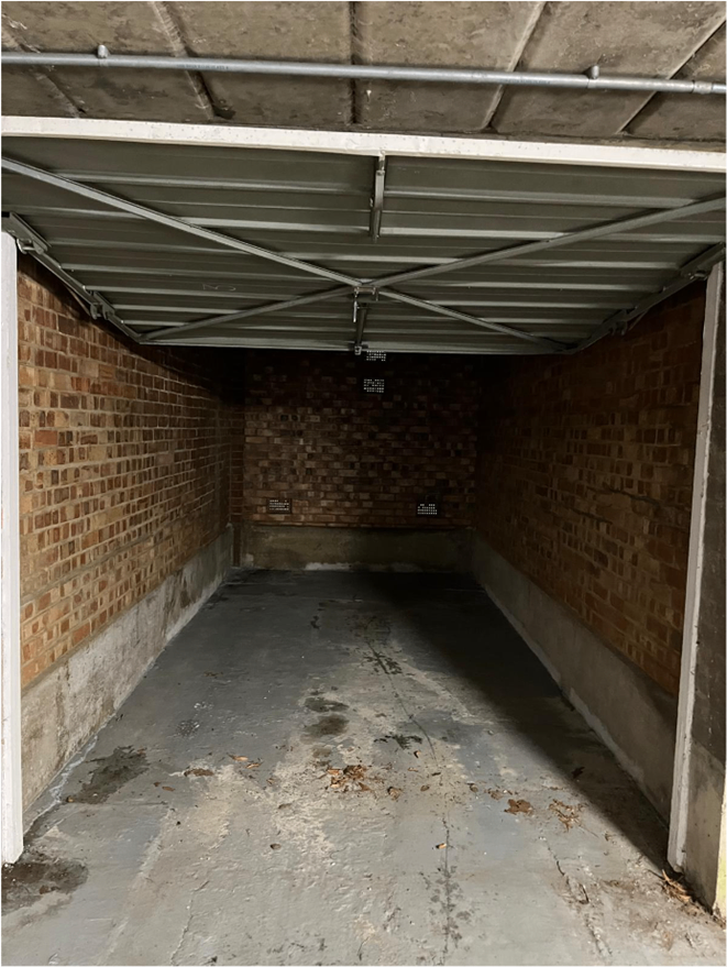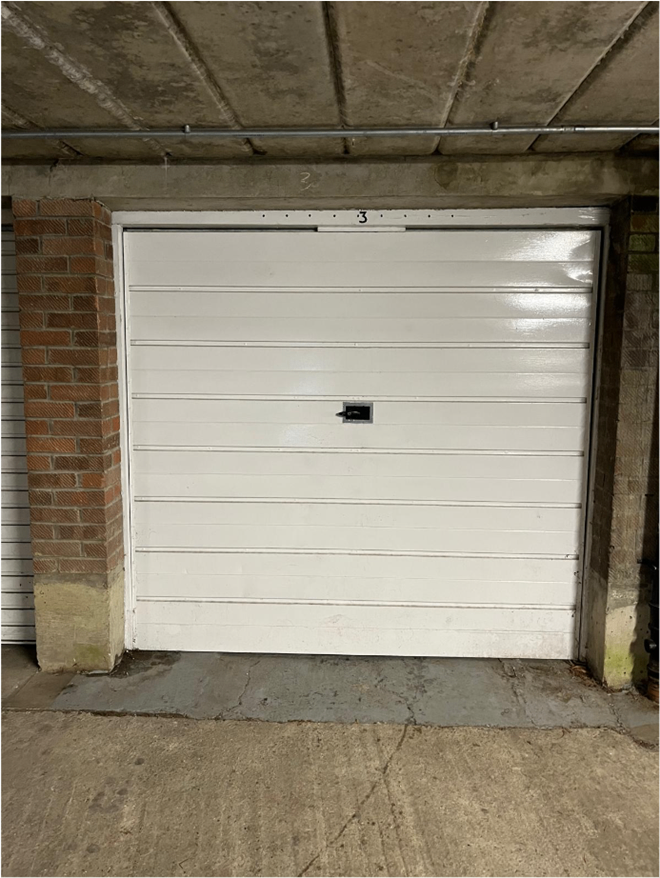 Under cover ground floor lockup garage, big enough for a small car.