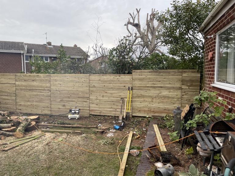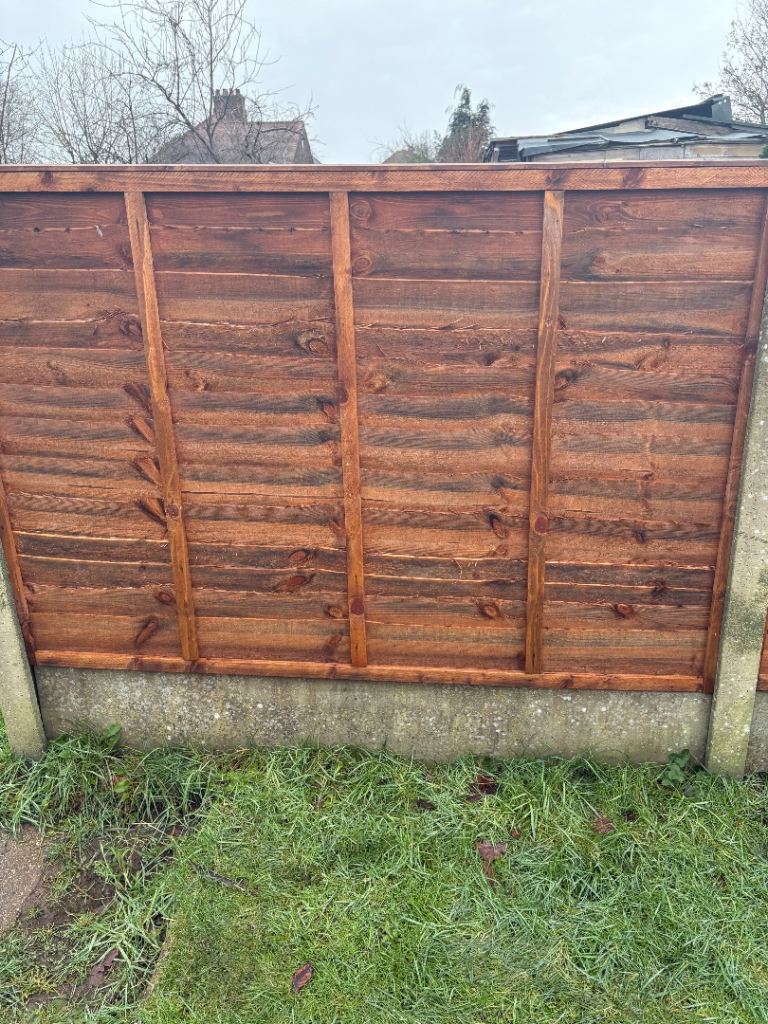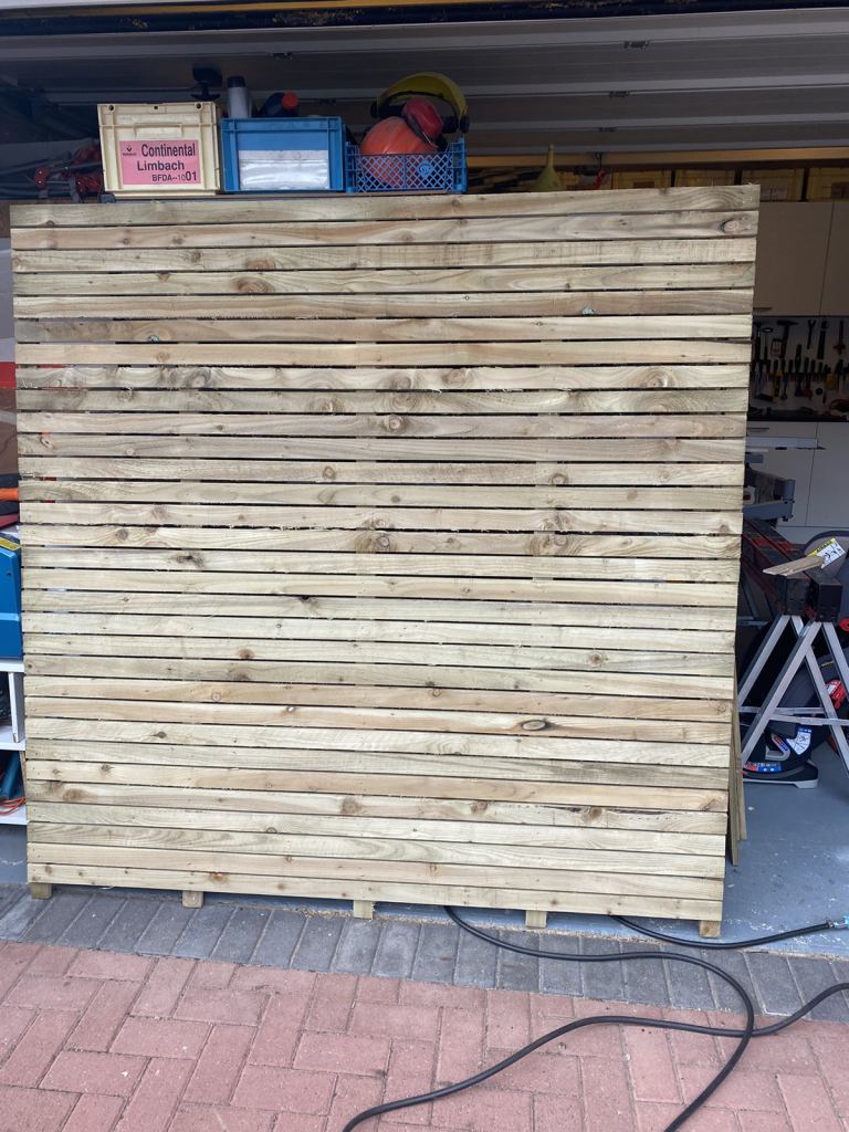 Six x six foot fence panels pressure treated wood made by hand aproxamatly two inch lats