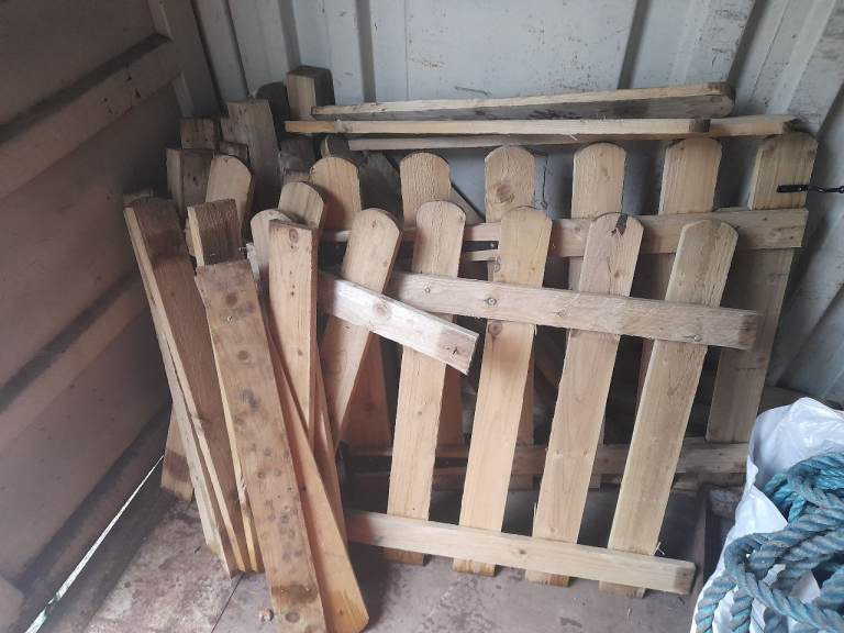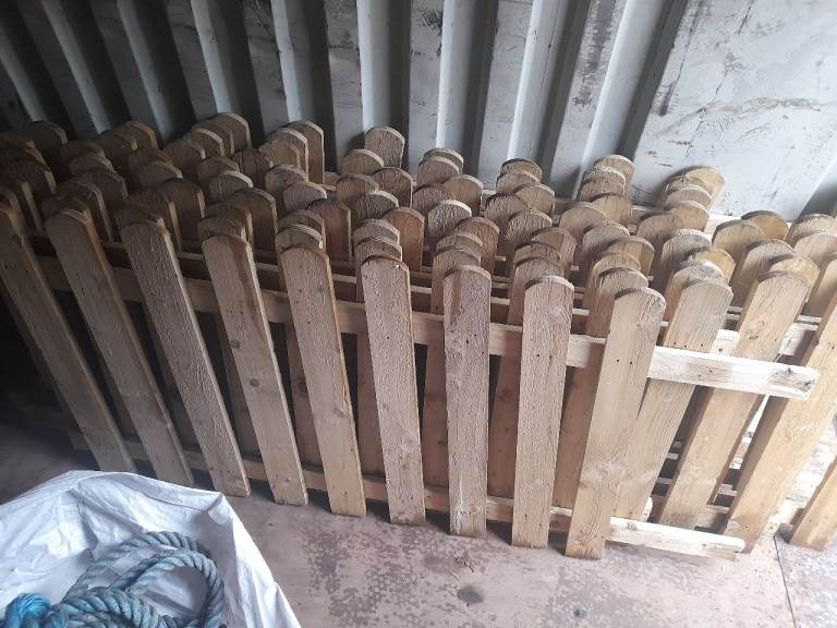 Picket fence...4 inch x 1 inch...new pressure treated wood...total length 70 foot approx...3 foot high...cut down to minimum 6 foot lengths...max 8 foot lengths...12 pieces plus 3 foot gate...would benefit being re-screwed...wood alone costs approx £600...no posts...contact through telephone number only please...could deliver locally