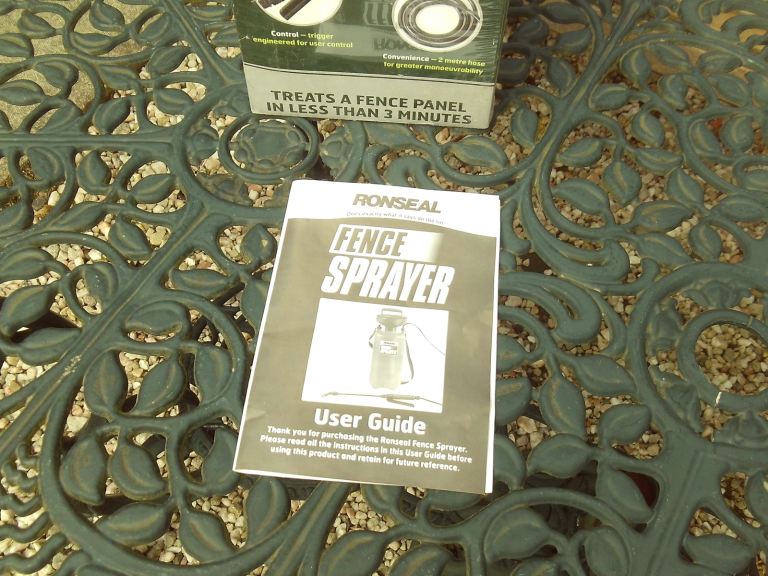 An alternative to using a brush, this Ronseal Fence sprayer claims to be 5 times faster than a brush delivering an accurate and even coverage . For use with any Ronseal sprayable product. Has been used a few times only. Thoroughly cleaned out and ready for use. Can also be used as an ordinary garden sprayer. Comes with user instructions.