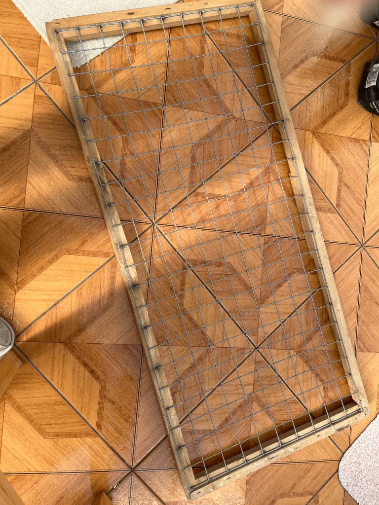 SOLD Wooden surround fence panel. 117cm x 55cm. Useful for garden, eg temporary fencing, small pets etc.