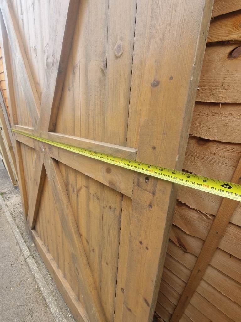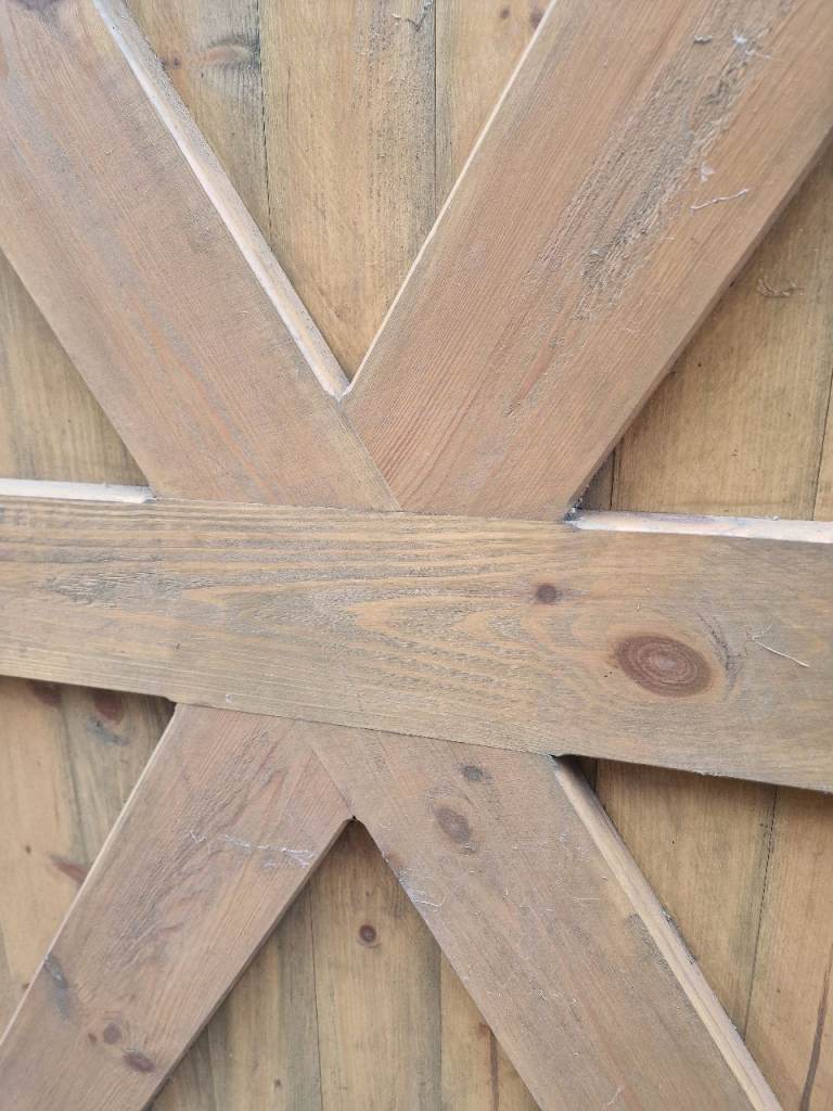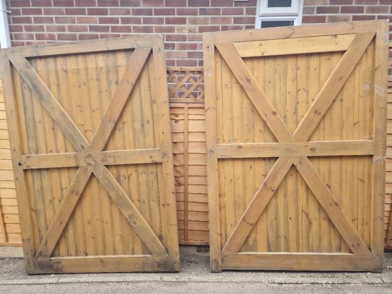 Solid timber gates. Structurally sound. There are occasional screw holes from the old hinges and latch as seen in photos