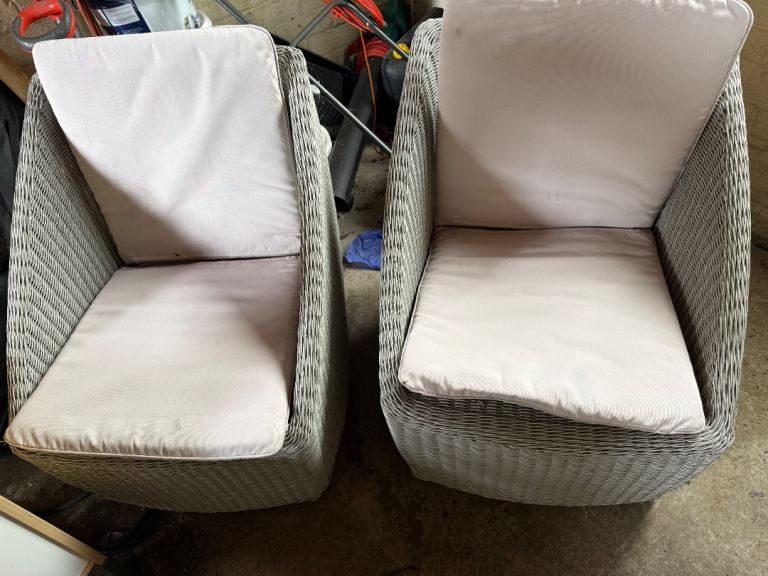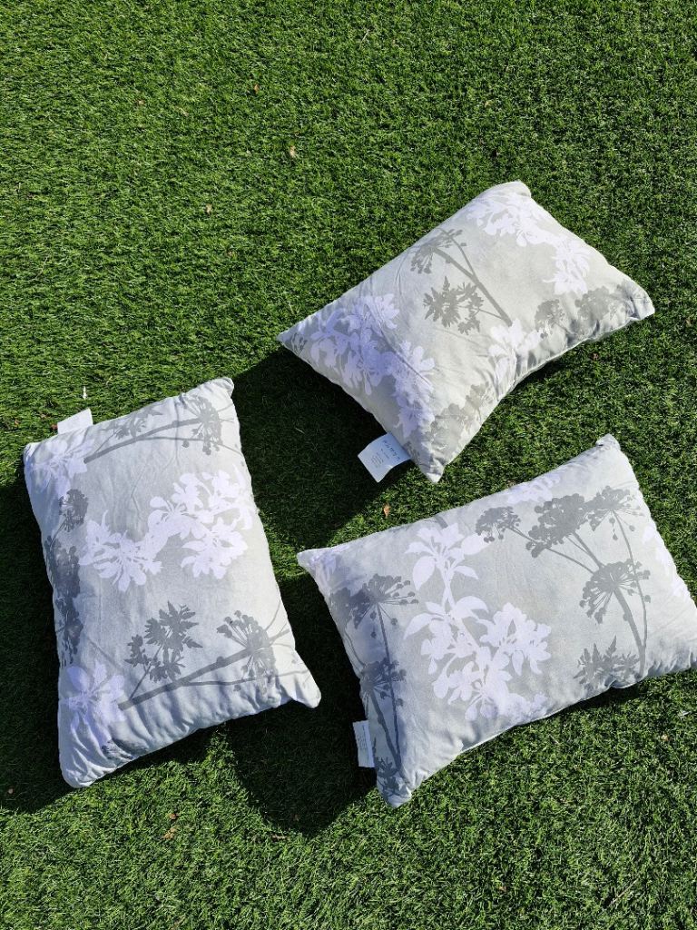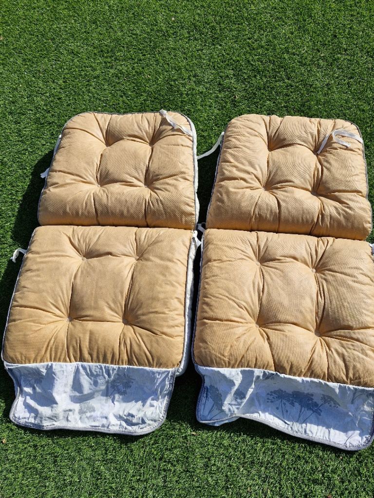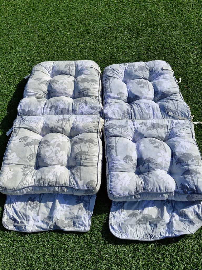 2 foldable swing seat cushions, total length 110 cm, seat and back lengths 55 cm each, width 60 cm, padding 10cm. 3 side cushions, 45 cm x 28 cm. Very comfortable. Good condition. From a smoke free home. Pick up from Hordle. * Reduced for quick sale *
