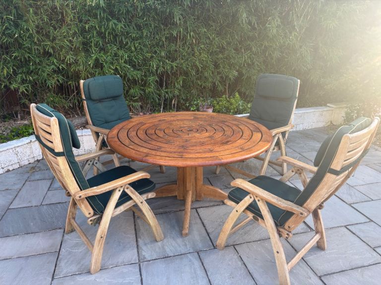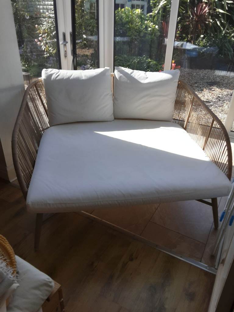 2 garden sunloungers with adjustable backs. Removable cushions. Not used much. In quite good condition. Price for the pair.