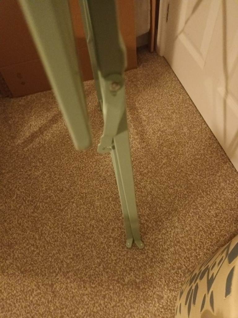 One of the metal hooks on the side is missing.