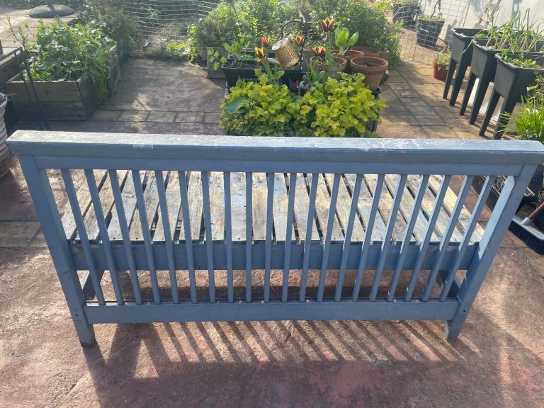 Garden bench for sale. Needs a lick of paint but otherwise in good condition. Sturdy with no rotten wood. 145cm long, 85cm high and 50cm deep.