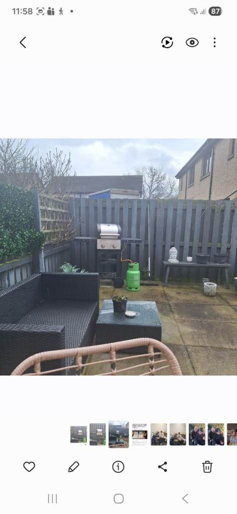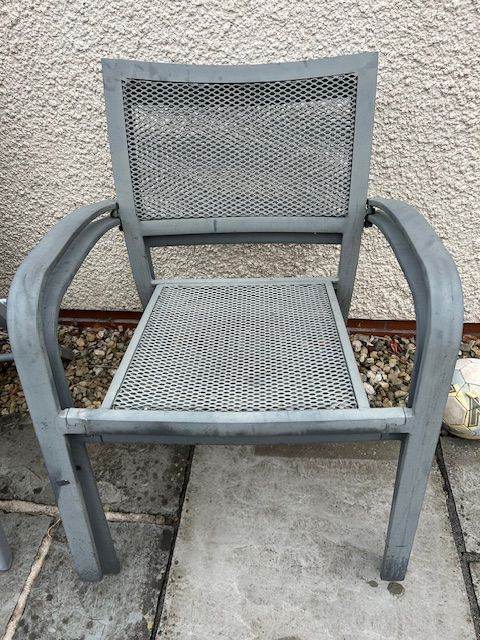 6 metal garden chairs, minor scuffing. £5 each chair. With seat cushions. Collection only.