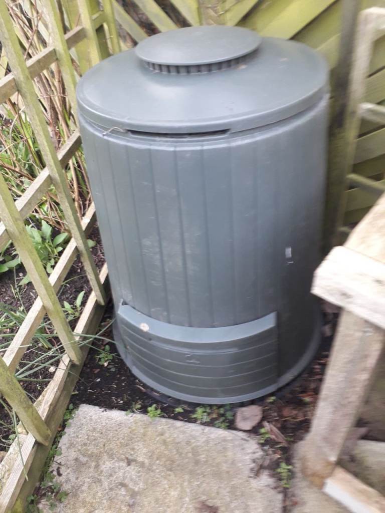 Garden composter in good condition. Complete with floor and lift shute and lid. Colour green.
