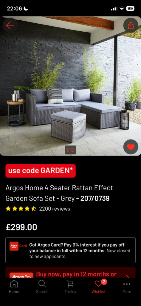 Garden corner sofa from Argos