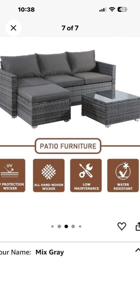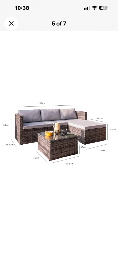 New boxed i have 2 full sets collection free. Comes in one single box. Seating and coffee table as seen in the photos. Bargain price £230 cash on collection