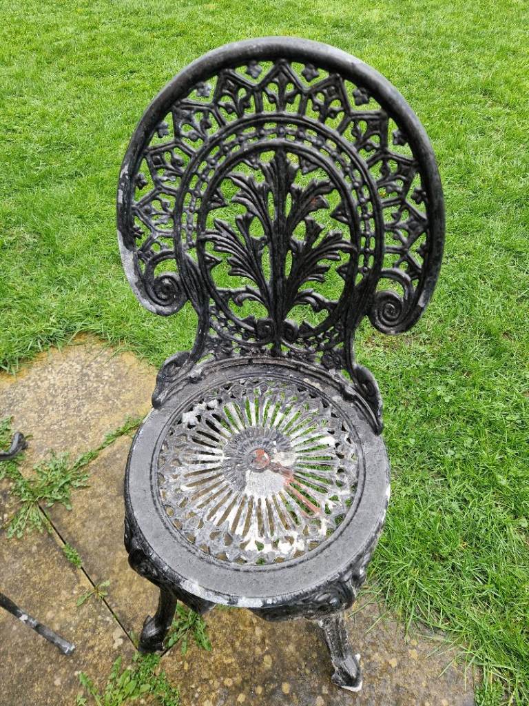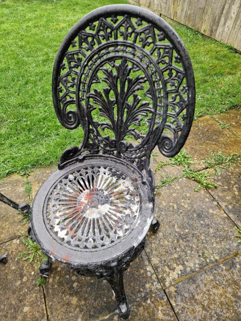 Garden table and chairs ornate design. Need a repaint but strong and sturdy.