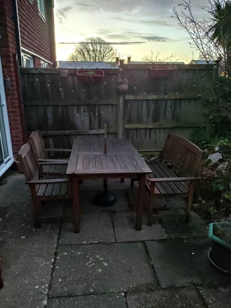 Posting for 2+ yearsGarden table with 2 chair and 2 benches