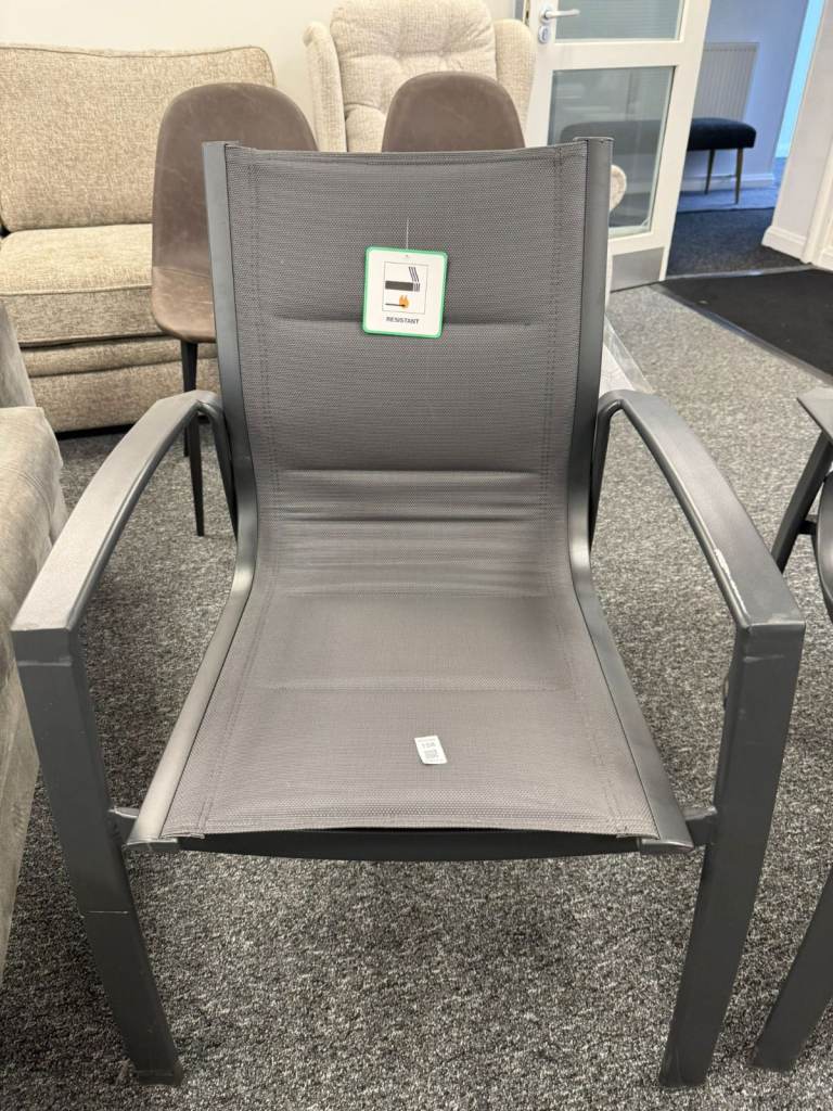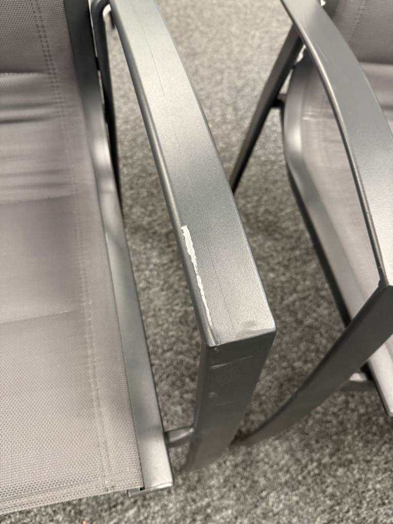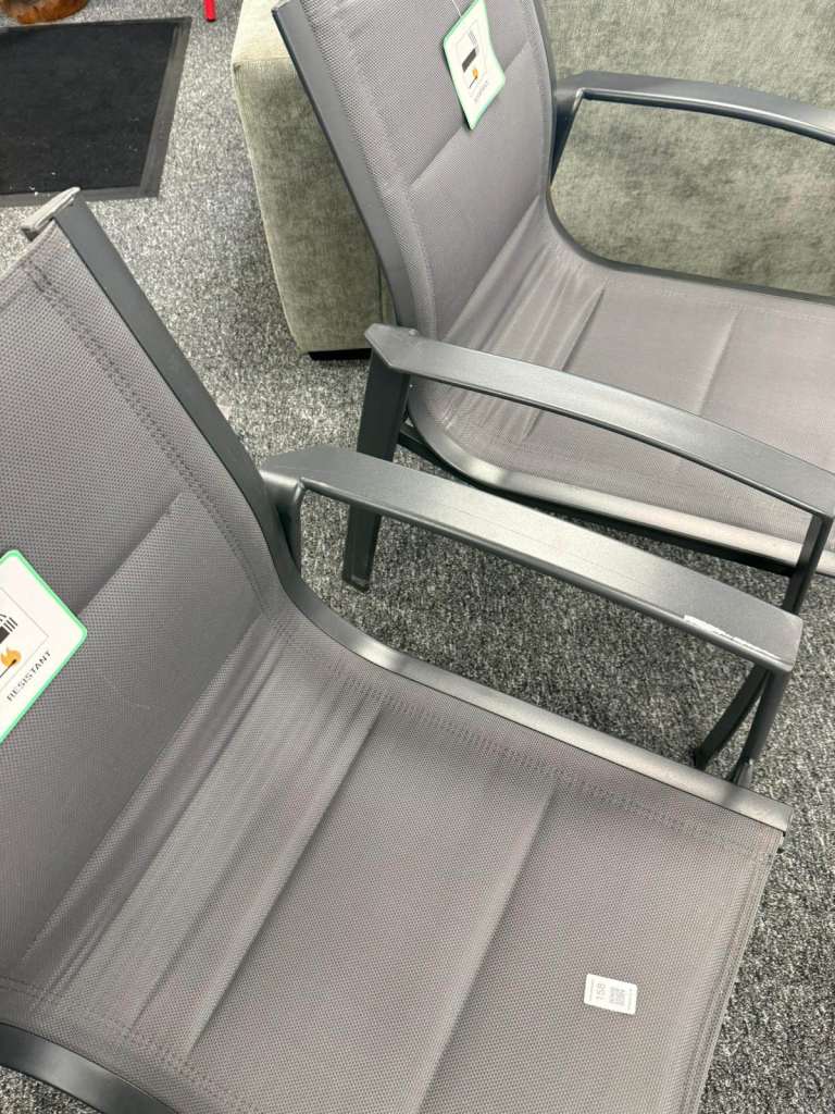 Selling a stylish pair of grey mesh garden chairs. These are sturdy, comfortable, and perfect for outdoor use on a patio, decking, or garden seating area.
