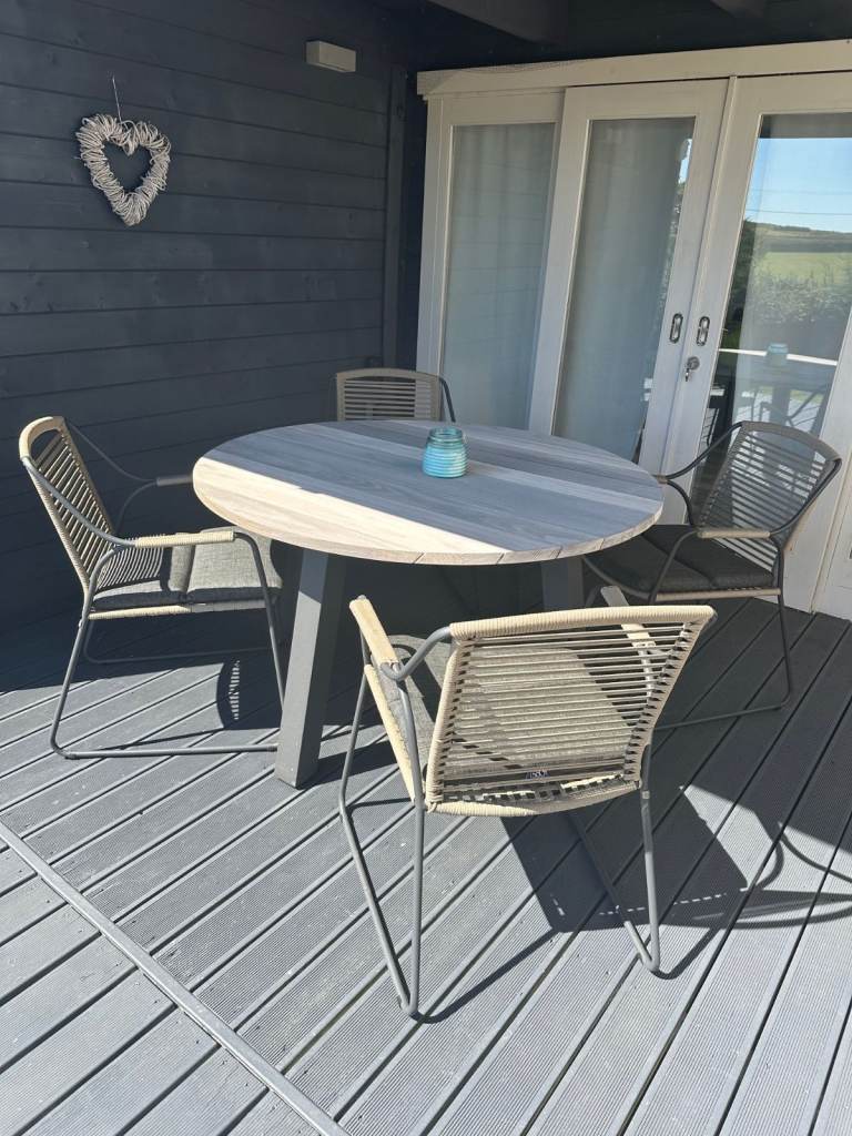 Table has two minor chips to the under edge as last 2 pics show, doesn’t affect its strength / durability & process reflected