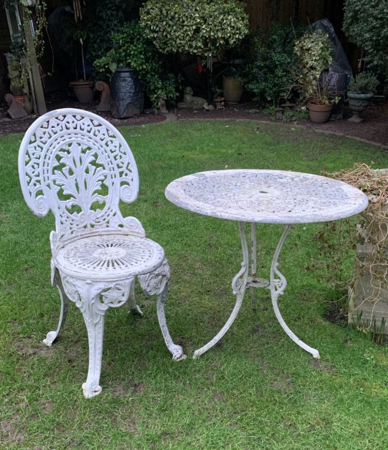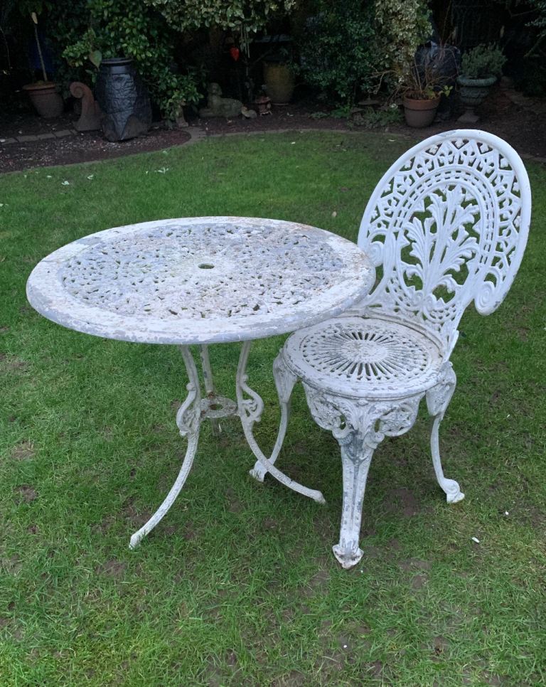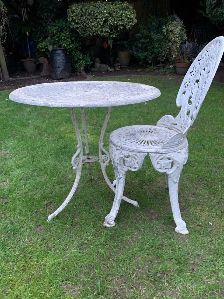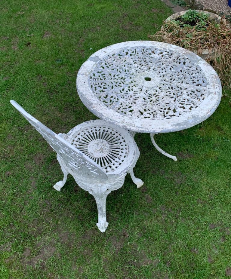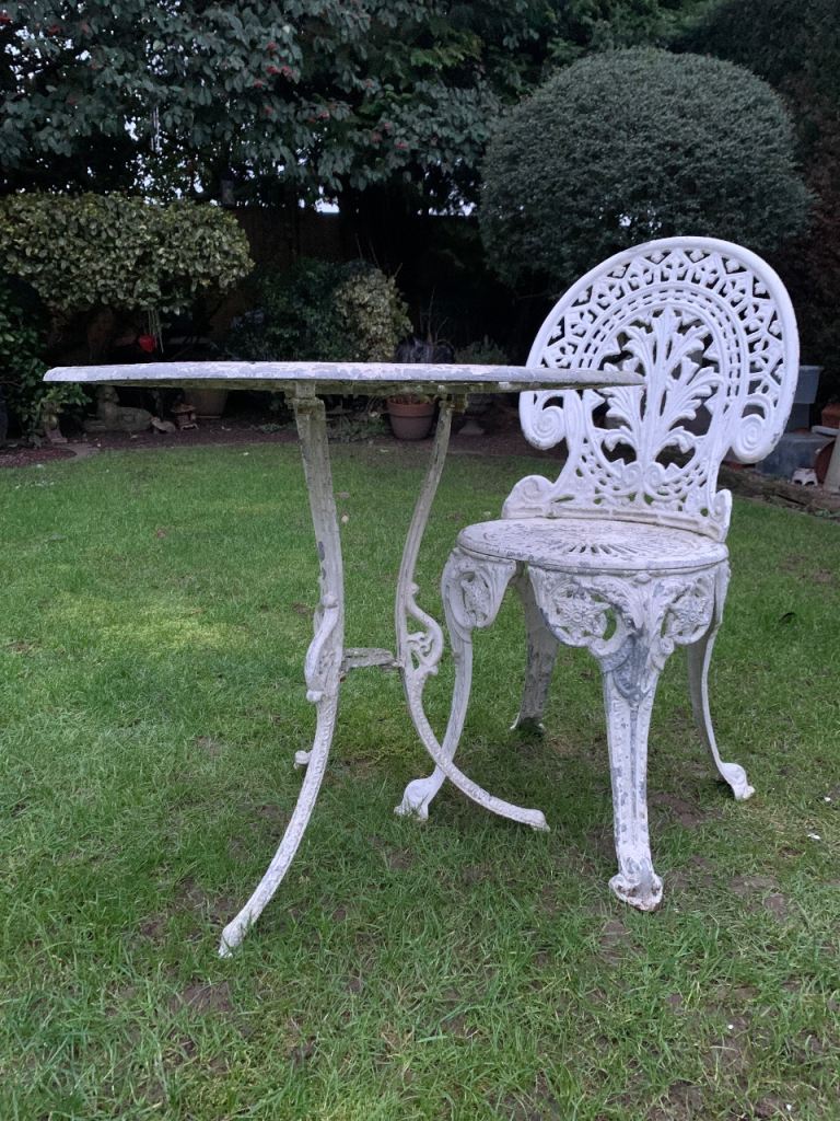 Metsl ornate garden table & 1 chair