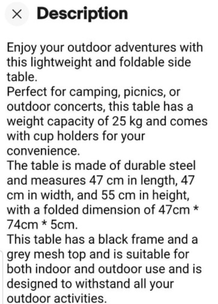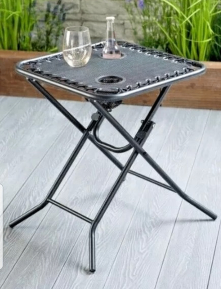 Posting for 12+ yearsNew Black & Grey fold up table with 2 cup holders for Indoor or outdoor
