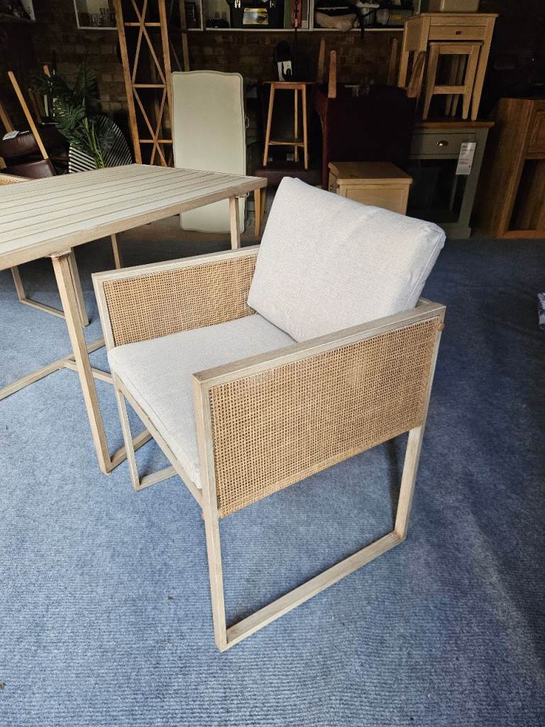 The rattan effect arms give this set a premium feel that is perfect for the summer months, finished with natural hue fabric upholstery.