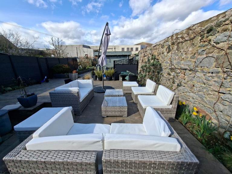 Set of 6 outdoor garden chairs with sturdy metal frames. Neutral colour, perfect for patio or garden use. Lightweight but strong, ideal for seating areas or outdoor dining.