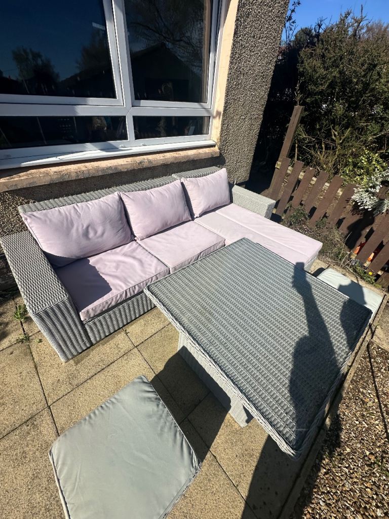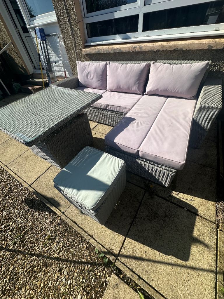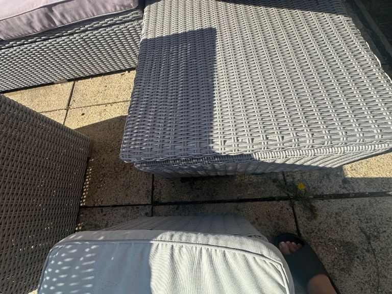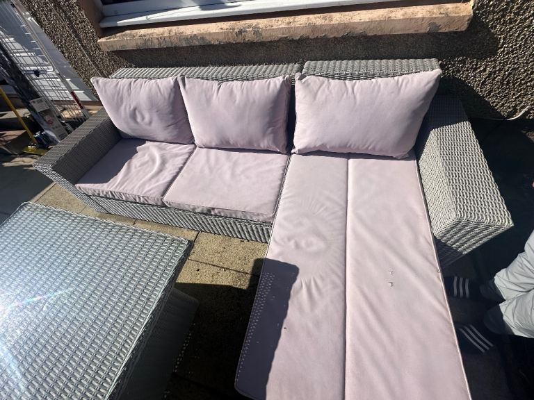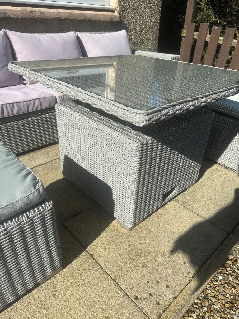 Has been power washed clean the other day. Is a solid sturdy rattan furniture in comparison to some of the rattan furniture you get. Comes with glass top table that the height can be adjusted to make it more like a coffee table.