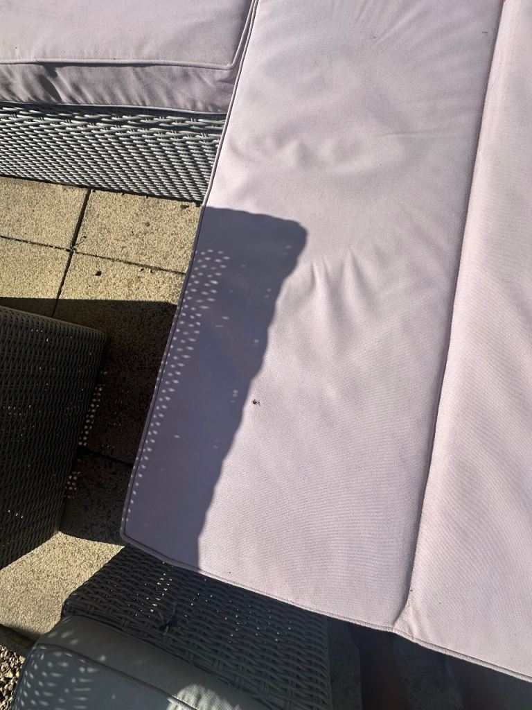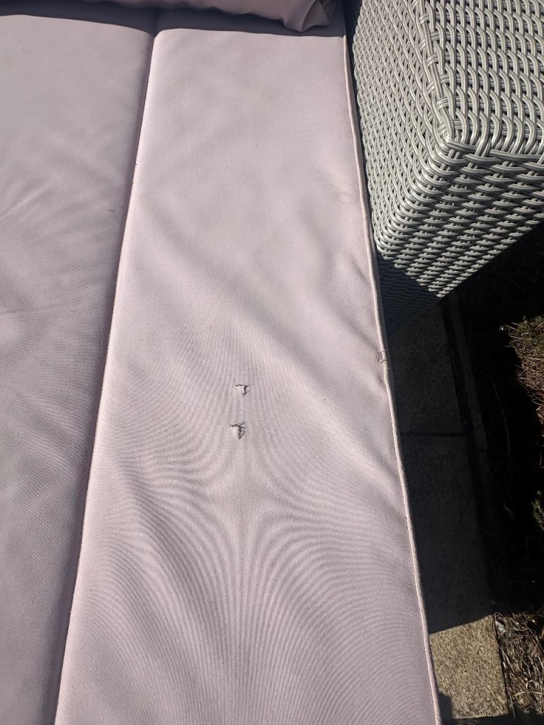 The big cushion does have some punctures in the fabric as shown in photos Could be covered with a throw if preferred.